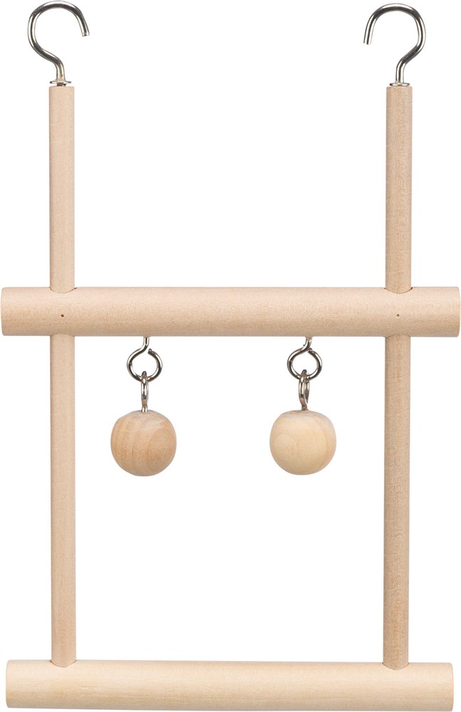 Denna dubbel fågelgunga bjuder in till både lek och balans. Den rörliga konstruktionen gör varje rörelse spännande, samtidigt som trädetaljerna ger ett stabilt grepp – perfekt för fåglar som gillar att vara i rörelse.