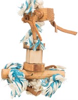 Ett mångsidigt fågelleksak som kombinerar trä, rep och mjuka detaljer för att väcka nyfikenhet och hålla din fågel aktiv. Perfekt för att picka, dra och utforska.