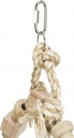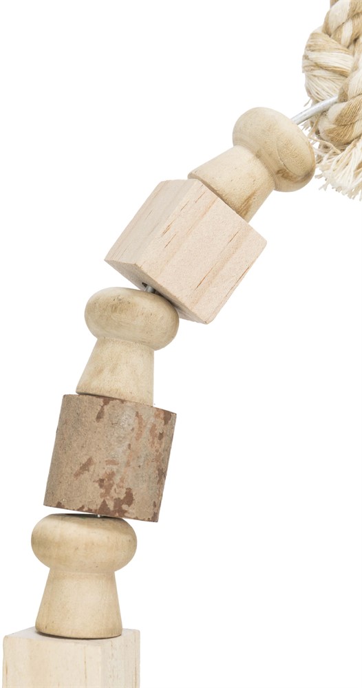 En större fågelgunga som kombinerar sittplats och lek i ett. De hängande trädelarna och repdetaljerna skapar rörelse och variation, vilket uppmuntrar din fågel att klättra, balansera och utforska – perfekt för aktiva fåglar.
