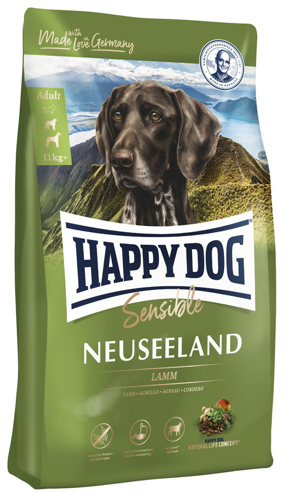 Happy Dog Sensible Neuseeland är ett smakrikt torrfoder utvecklat för vuxna hundar med känslig mage. Receptet är vetefritt och baserat på lättsmält lamm som bidrar till ett skonsamt och näringsrikt foder. Noggrant utvalda ingredienser gör fodret extra välsmakande och lättsmält. Berikat med nyzeeländsk grönläppad mussla samt värdefulla omega-3- och omega-6-fettsyror som stödjer lederna och bidrar till frisk hud och en glänsande päls.