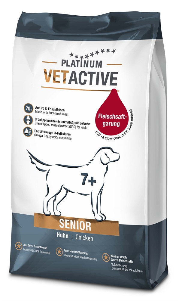 VETACTIVE Senior är ett balanserat torrfoder för äldre hundar med särskilda näringsbehov – utan att göra avkall på smak eller högkvalitativa ingredienser.
