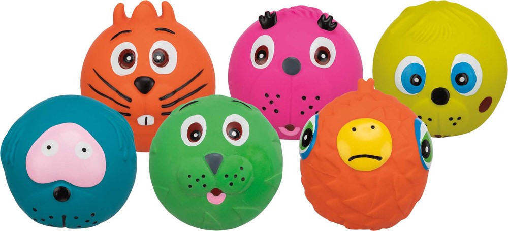 Denna boll i latex kombinerar enkel bolllek med roliga djurfigurer som gör leken ännu mer stimulerande. Den mjuka latexen är skonsam mot tänder och tandkött samtidigt som bollen är lätt att greppa och bära. Perfekt för kast- och apporteringslek både inomhus och utomhus. Levereras i olika djurformer, vilket gör varje boll till en rolig överraskning för både hund och ägare.