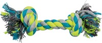 Denna klassiska repleksak är perfekt för hundar som älskar att dra, tugga och leka aktivt. Det flätade repet ger ett bra grepp för både hund och ägare, vilket gör leksaken idealisk för draglek och interaktiva lekstunder. Samtidigt hjälper den robusta repstrukturen till att stimulera hundens naturliga tuggbehov. Materialblandningen av bomull och polyester gör leksaken slitstark och behaglig för hundens mun. De fransade ändarna gör leksaken extra spännande att bära och tugga på, vilket uppmuntrar till lek och aktivitet både inomhus och utomhus.