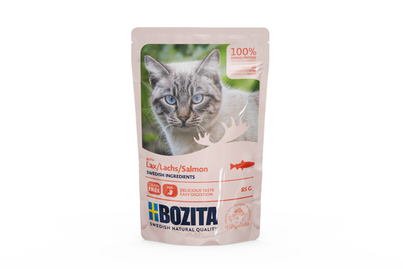 Bitar i sås med lax. Vår lax kommer från Norrlands vilda vatten. Den innehåller höga nivåer av Omega 3- och Omega 6-fettsyror och har en distinkt och uppskattad smak