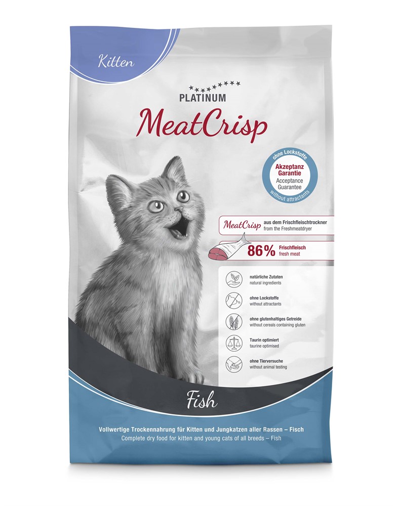 MeatCrisp Kitten Fish är tillagat av 86 % färskt fiskkött av human kvalitet. MeatCrisp är den första hälsosamma kattmaten från en Freshmeatdryer. Det innehåller färskt kötts naturliga mikronäringsämnen och aminosyror, vilket gör MeatCrisp till en bättre ersättning för kattens naturliga byte än de flesta kommersiella kattfoder. Om du matar din katt med MeatCrisp kommer den att känna sig stabilare och mer avslappnad och därmed gladare. Det krispiga bettet och den köttiga smaken hos MeatCrisp gör det så gott att din katt inte vill äta något annat. MeatCrisp innehåller inga lockämnen.