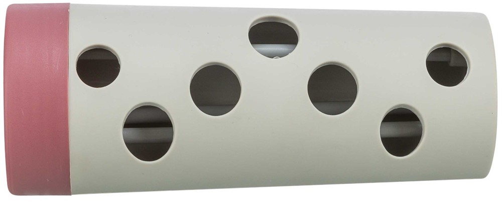 En rolig och stimulerande snackrulle som uppmuntrar katten att arbeta för sin belöning. När rullen sätts i rörelse faller godbitar ut genom öppningarna, vilket väcker kattens nyfikenhet och jaktinstinkt. De uttagbara stavarna gör det enkelt att justera svårighetsgraden och reglera hur snabbt godiset kommer ut. Den tystgående gummibeläggningen ger en lugnare rullning över golvet. Rullen är lätt att skruva isär för smidig påfyllning och rengöring, och den tål maskindisk. Perfekt för både självständig lek och aktiva lekstunder tillsammans.