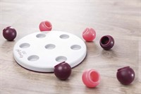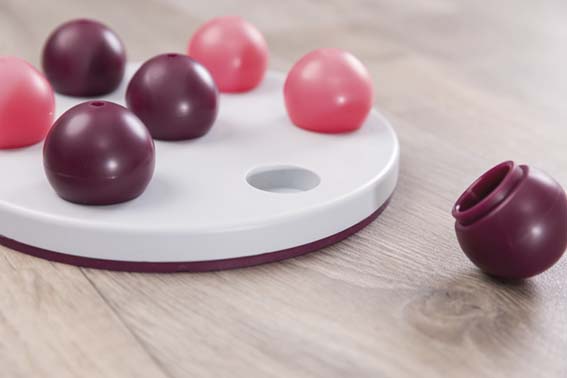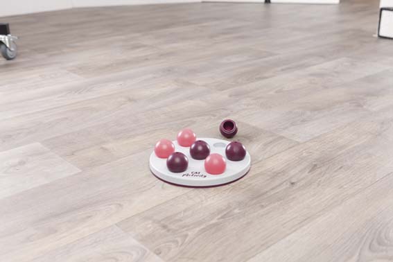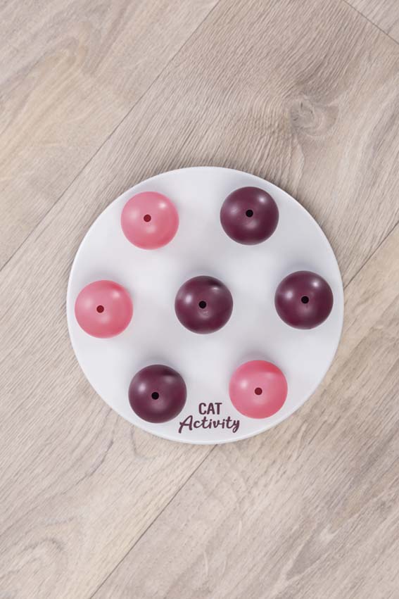 Ett stimulerande och underhållande strategispel som utmanar kattens problemlösningsförmåga. Göm godbitar, snacks eller till och med flytande belöningar under de sju täckkulorna och låt katten använda tassar och nos för att flytta dem och komma åt innehållet. Spelet tränar både koncentration och finmotorik samtidigt som det aktiverar kattens naturliga jaktinstinkt. Den halkfria gummiringen håller spelbrädet stadigt på plats under leken. Hela produkten tål maskindisk, vilket gör rengöringen enkel och hygienisk. Perfekt för både självständig lek och aktiva lekstunder tillsammans. Testad av oberoende expertorgan för djurvälfärd och djurskydd.