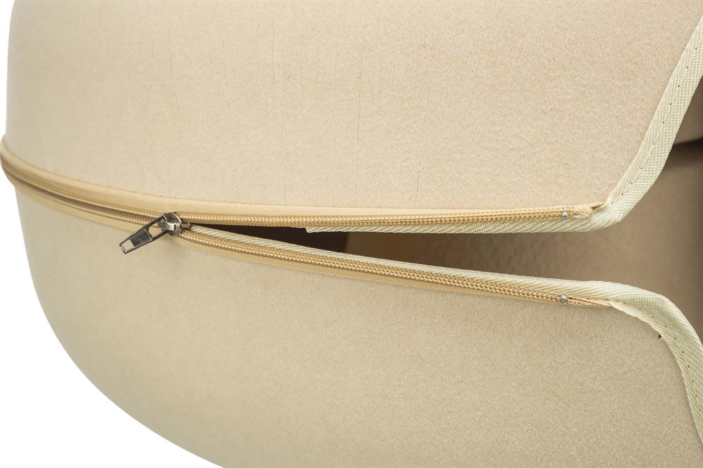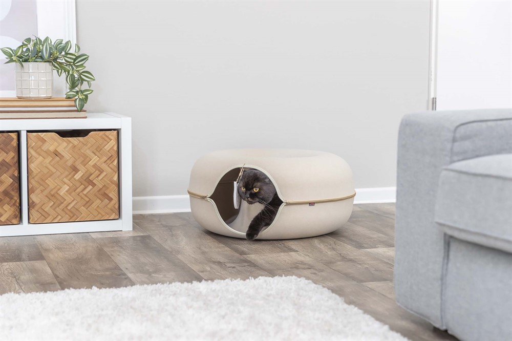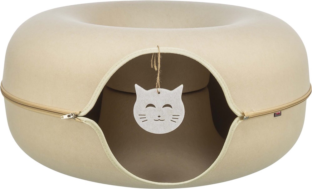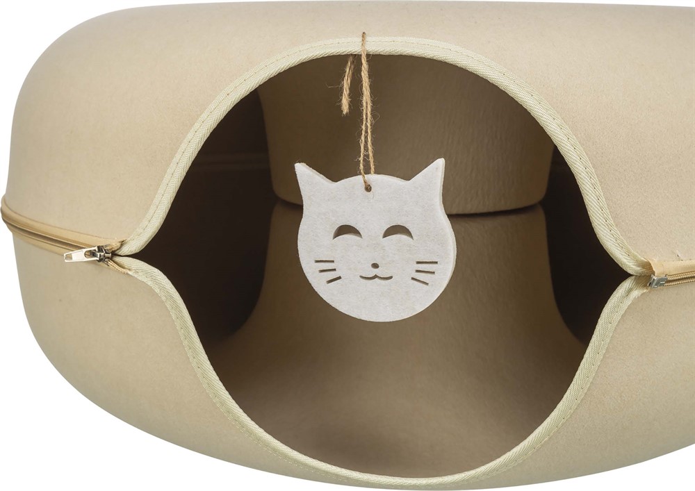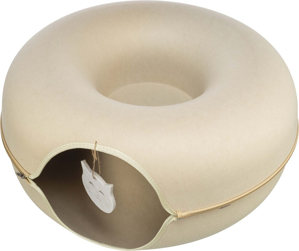 En mångsidig leksak som kombinerar aktivitet och vila i ett. Den runda formen bjuder in till lek, medan den mjuka liggytan ger en bekväm plats att koppla av på. Den öppningsbara designen och den hängande leksaken skapar variation och stimulerar nyfikenheten.