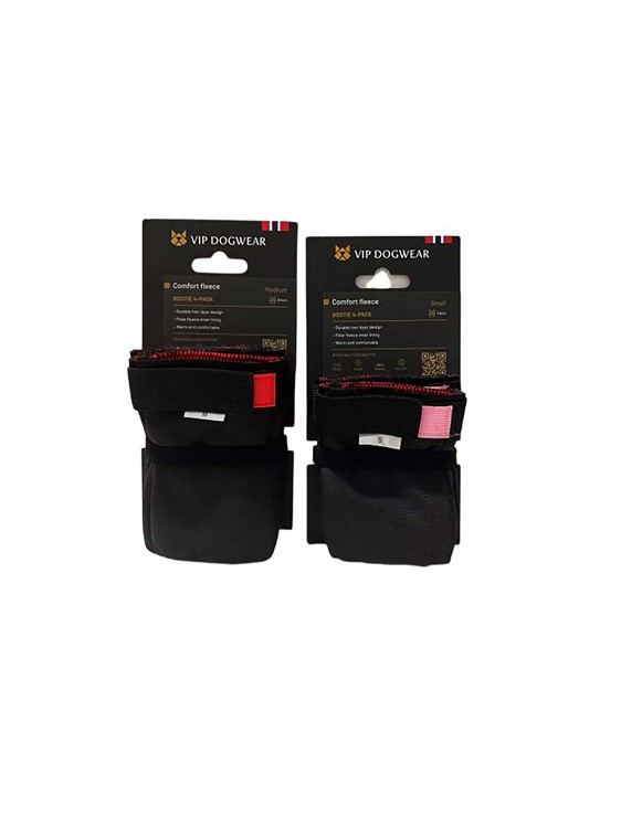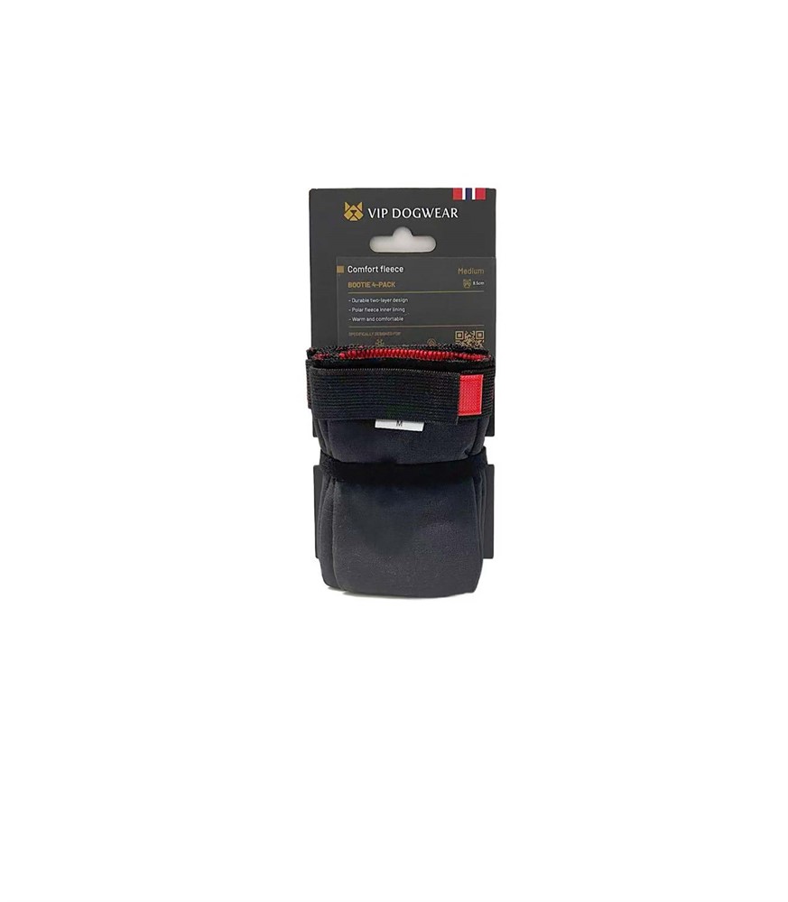 VIP Comfort Fleece High Dog Booties är tekniska hundsockor i två lager som skyddar tassarna under aktiva dagar. Den slitstarka utsidan kombineras med ett mjukt fleecefoder som ger värme och komfort. Sockorna passar både i förebyggande syfte på snö och grus samt när hunden behöver extra skydd för känsliga eller såriga tassar. Den höga modellen och dubbla kardborreband ger en säker och stabil passform.