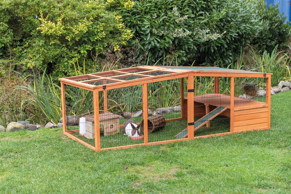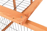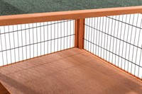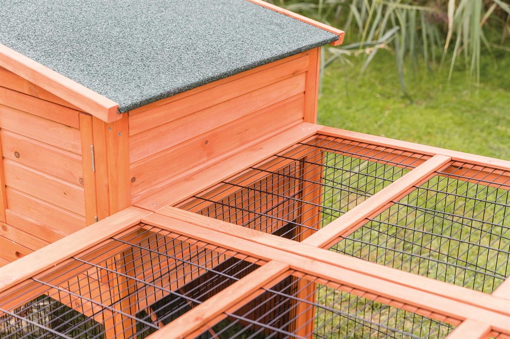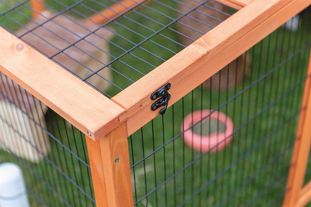 Våra smådjursburar och inhägnader är behandlade med en giftfri lasyr och därmed optimalt skyddade mot väderpåverkan. För att behålla detta skydd rekommenderar vi att man målar träet vart 1-3 år med en giftfri trälasyr eller färg (vattenbaserad, lämplig för utomhusbruk).