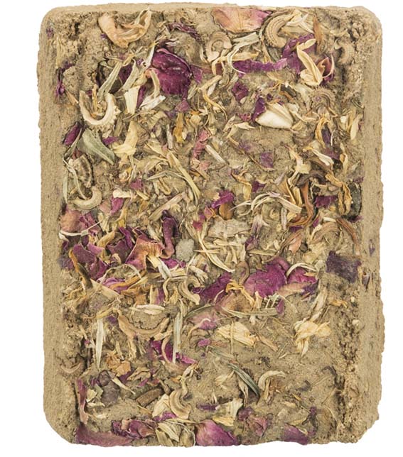 Sammansättning: naturlig lera (86 %), veteflingor, ringblomma (0,2 %), rosenblad (0,2 %) | Förvaras svalt och torrt.